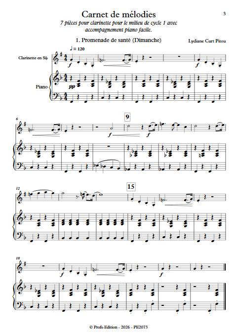 Carnet de mélodies - Clarinette et Piano - CURT PITOU L.
