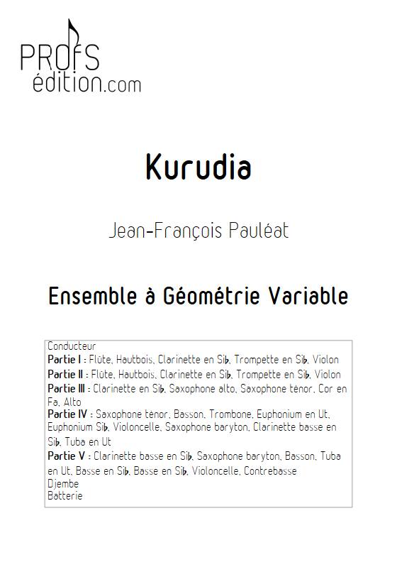 KURUDIA est une petite pièce imaginée pour un ensemble de musiciens de 1er cycle. Elle évoque l'Afrique et tire d'ailleurs son titre d'un mot swahili signifiant répéter. Et en effet, les motifs utilisés sont répétitifs ! La carrure est irrégulière et permet d'aborder la mesure à 7/8. La rythmique sera à mettre en place en s'appuyant sur la partie de djembé. Le tempo est modéré et est à adapter en fonction de l'aisance des musiciens.