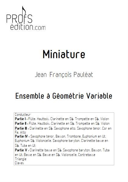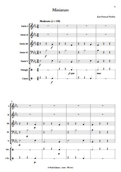 MINIATURE est une pièce courte à 3 temps binaires où les musiciens vont devoir s'écouter ! En effet, pour construire l'accompagnement, chaque note devra trouver sa place ! La tonalité de Mib Majeur constitue une petite difficulté qui sera vite surmontée grâce à la simplicité de la mélodie. Le tempo est modérément rapide et peut tout à fait s'adapter aux possibilités des musiciens de 1er cycle. Le côté répétitif permettra à chacun de vite prendre ses repères ... et ainsi prendre plaisir à jouer cette miniature !