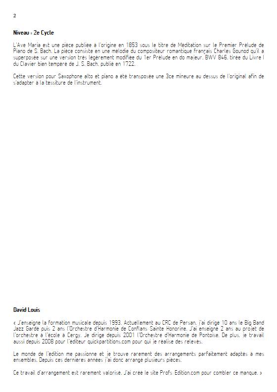 Cette version pour Saxophone alto et piano a été transposée une 3ce mineure au dessus de l'original afin de s'adapter à la tessiture de l'instrument.