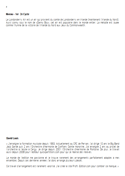 « J’enseigne la formation musicale depuis 1993. Actuellement à l'école de musique de Franconville, j’ai dirigé 10 ans le Big Band Jazz Gardé puis 2 ans l’Orchestre d’Harmonie de Conflans-Sainte-Honorine. J’ai enseigné 2 ans au projet de l’orchestre à l’école à Cergy. Je dirige depuis 2001 l’Orchestre d’Harmonie de Pontoise. De plus, j'ai aussi travaillé 10 ans pour l’éditeur quickpartitions.com pour qui j'ai réalisé des relevés.