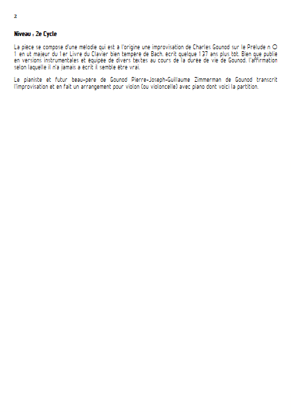Le pianiste et futur beau-père de Gounod Pierre-Joseph-Guillaume Zimmerman de Gounod transcrit l'improvisation et en fait un arrangement pour violon (ou violoncelle) avec piano dont voici la partition.